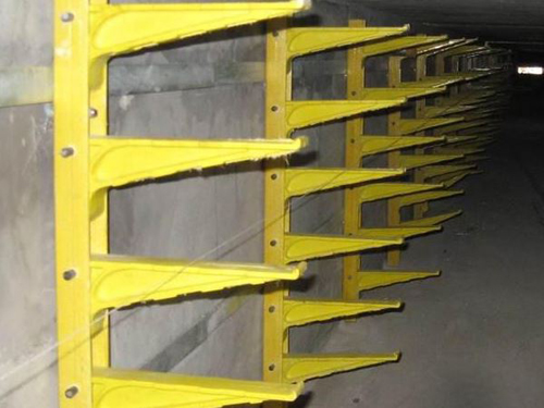 玻璃鋼電纜支架具有耐腐蝕、不變形、比重輕、電絕緣性能強、防火性能優(yōu)、支架安裝簡單,價格更優(yōu)、使用壽命長、安全防盜、等特點,玻璃鋼復(fù)合材料支架耐腐蝕,尤其適合在潮濕,酸、堿環(huán)境中使用。支架其剛性好,在長期載荷情況下不會出現(xiàn)金屬支架往下傾斜現(xiàn)象。質(zhì)量僅為剛才的1/4。材料支架為絕緣材料,無需接地。氧指數(shù)滿足了防火其低煙、無毒的安全要求。≤4層時只需2只膨脹螺絲安裝,4層><7層只需3只膨脹螺絲安裝,大大降低了工人的勞動強度。在地下使用壽命為50年,地面為25年。的原材料都采用不可回收材料,有效的阻止被盜。 玻璃鋼電纜支架適用于各種電纜敷設(shè)場所,現(xiàn)場安裝及電纜敷設(shè)施工極為方便。托臂裝配連接螺栓規(guī)格為M8*65,立柱固定膨脹螺栓為M12。具有優(yōu)異的耐腐蝕和抗老化性能。為高分子復(fù)合材料,由樹脂、玻璃纖維及填料組成,其特點是材料性能和產(chǎn)品結(jié)構(gòu)根據(jù)使用對象的要求同時設(shè)計,并且材料的制作和產(chǎn)品的制作同時進行。支架為組合式,由托臂、立柱和連接螺栓組成。立柱為槽型材料,可根據(jù)需要任意截取長度,調(diào)節(jié)層高,自由裝配;托臂有五種規(guī)格供選擇,滿足不同長度和荷載要求。 螺釘式電纜支架具有優(yōu)良的耐化學(xué)腐蝕性,玻璃鋼與普通金屬的電化學(xué)腐蝕機理不同,它不導(dǎo)電,在電解質(zhì)溶液里不會有離子溶解出來,因而對大氣、水和一般濃度的酸、堿、鹽等介質(zhì)有著良好的化學(xué)穩(wěn)定性,特別有強的非氧化性酸和相當(dāng)廣泛的PH值范圍內(nèi)的介質(zhì)中都有良好的適應(yīng)性。為高分子復(fù)合材料,由樹脂、玻璃纖維及填料組成,其特點是耐腐蝕、比重輕、電絕緣性能強、防火性能優(yōu)、使用壽命長。